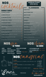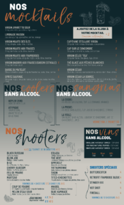 Choisissez parmi un large éventail de bières, vin, cocktails et spiritueux pour accompagner votre repas :
